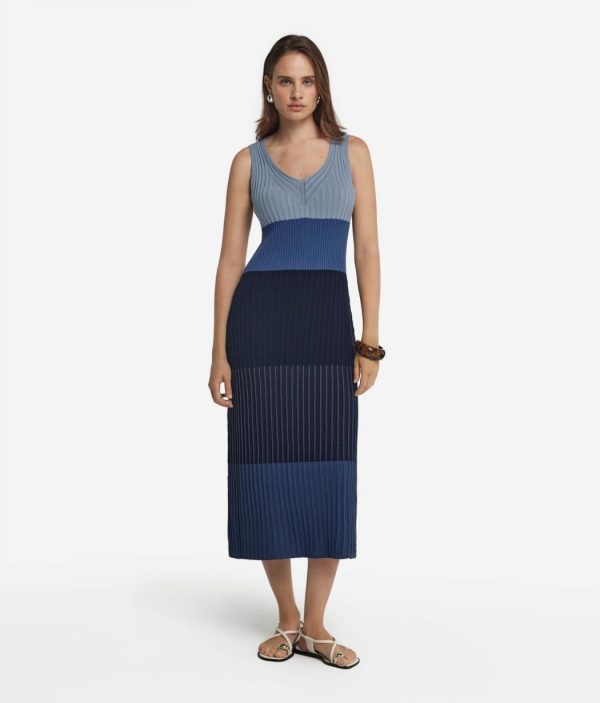 Realizzato in fresco cotone, questo abito avvolge il corpo in un abbraccio leggero e piacevole sulla pelle. La lavorazione a costine, delicate e alternate, crea un gioco di ombre e luci che accarezza la pelle con ogni movimento. Lo scollo a V, elegante e raffinato, aggiunge un tocco di sensualità, mentre la vestibilità slim sottolinea la silhouette con grazia naturale.