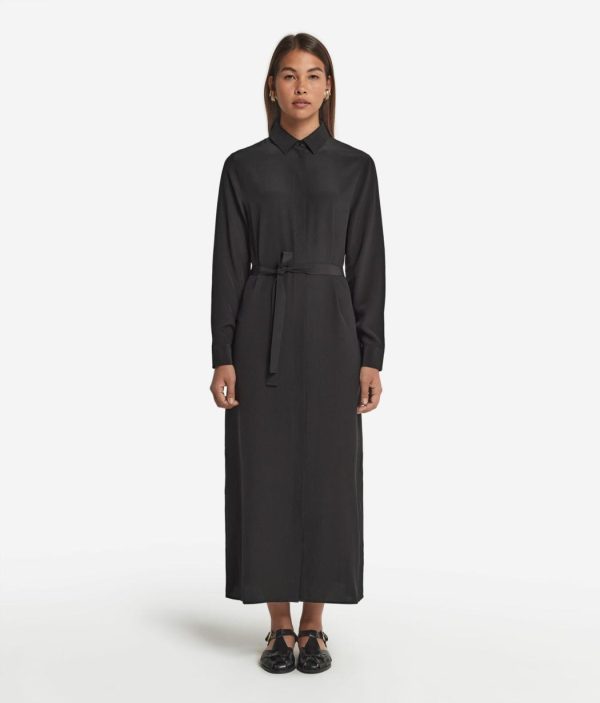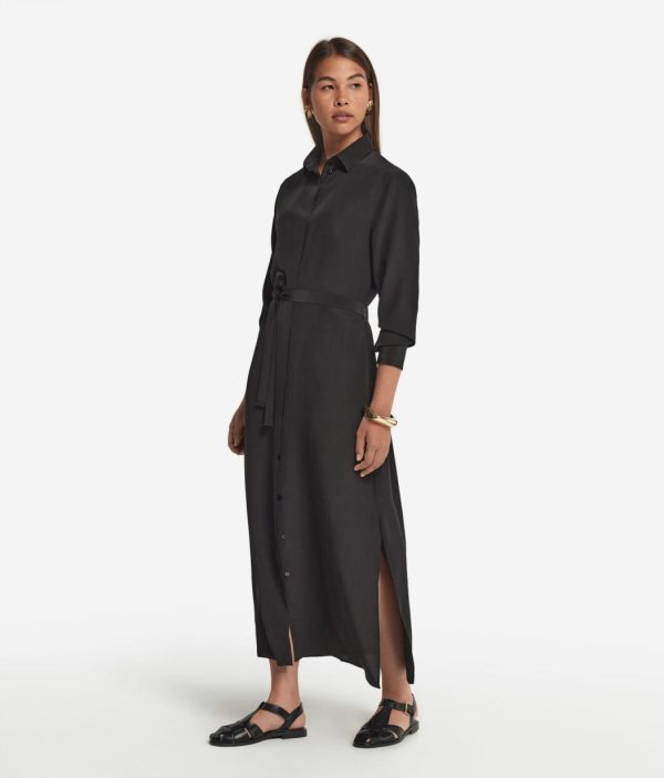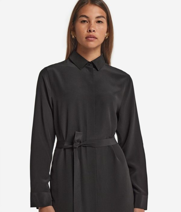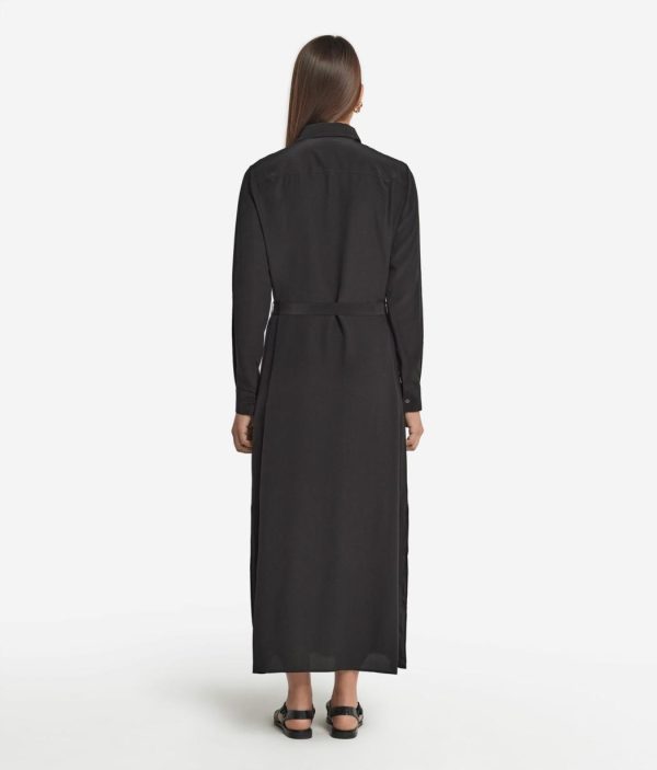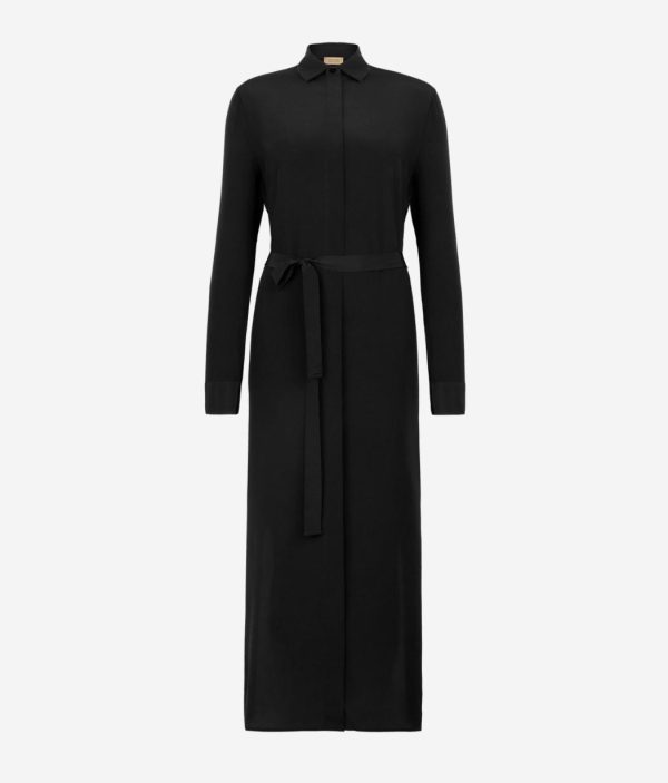 Linee fluide ed essenziali definiscono lo stile di questo abito leggero in crepe de chine con colletto e apertura con bottoni a scomparsa. La cintura removibile in vita permette di personalizzare la silhouette, mentre i pratici spacchi laterali sul fondo aggiungono movimento e un’aria contemporanea. Un capo versatile e chic, perfetto per ogni occasione.