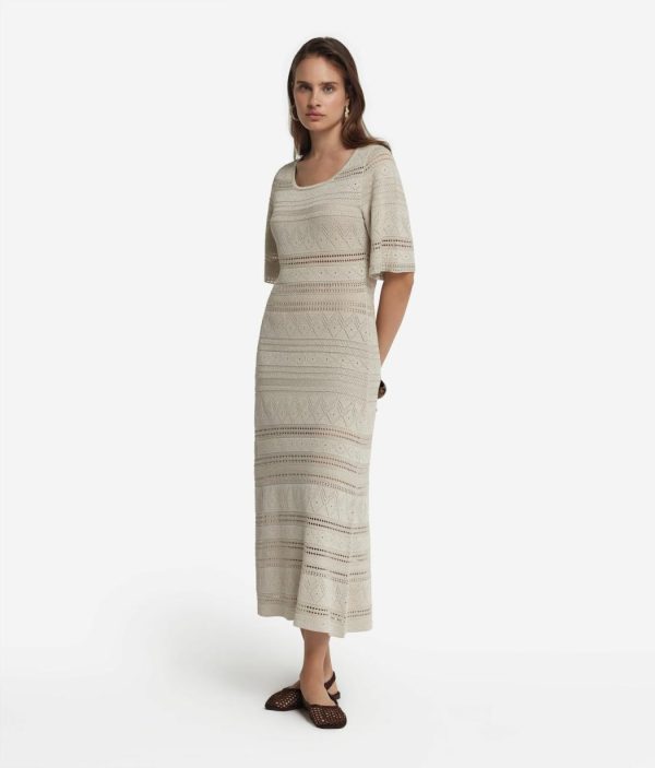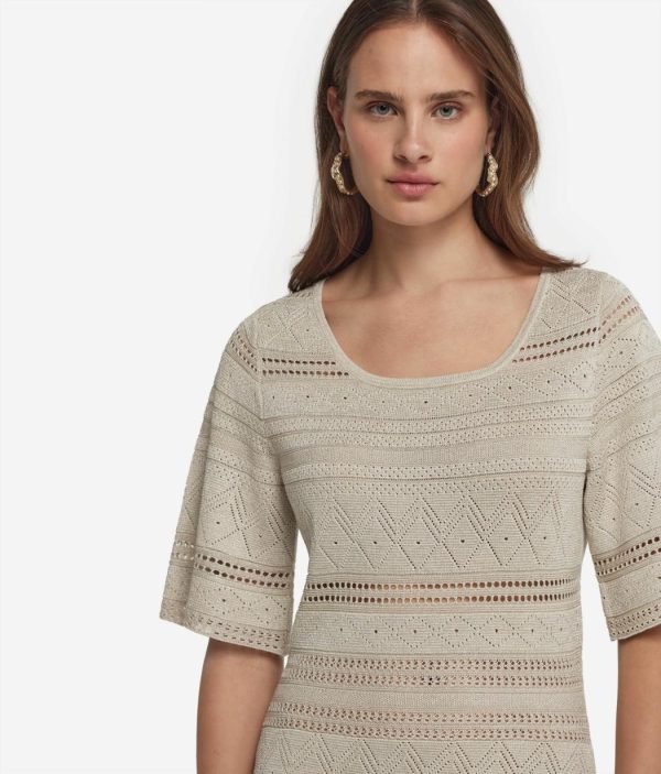 Per le donne che amano uno stile romantico e raffinato, questo abito, realizzato in cotone e viscosa, rappresenta l’essenza di un’eleganza senza tempo. La sua lavorazione traforata effetto crochet, impreziosita da dettagli in lamè, dona al capo una sofisticata luminosità, rendendolo perfetto per ogni occasione speciale.