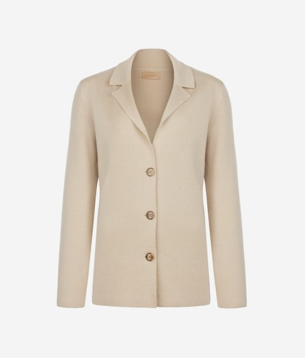 Avvolgente e raffinato, questo blazer in lana si distingue per la sua morbida lavorazione in maglia punto stoffa. Il rever delicato e l’abbottonatura monopetto donano un’eleganza senza tempo, mentre la spalla regolare e la vestibilità fluida seguono con grazia i movimenti. Con una lunghezza al fianco, è il compagno ideale per look che raccontano stile e leggerezza, tra armonia e femminilità sussurrata.