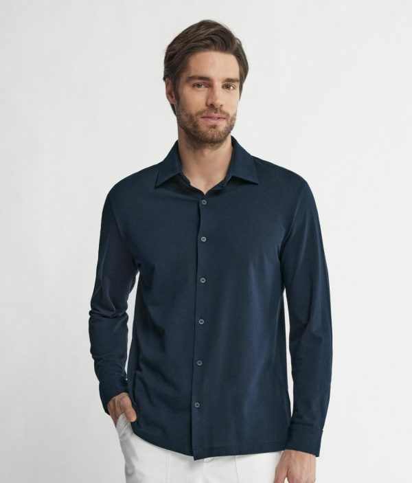 Questa leggerissima camicia in jersey di cotone e seta esalta lo stile elegante e ricercato tipico del marchio. Le linee semplici rendono il capo versatile e perfetto per essere indossato in ogni occasione.