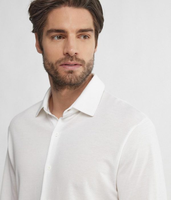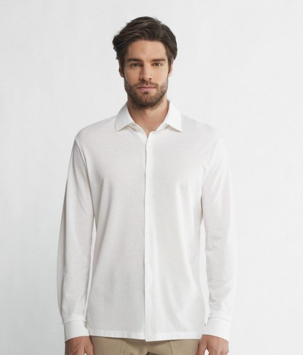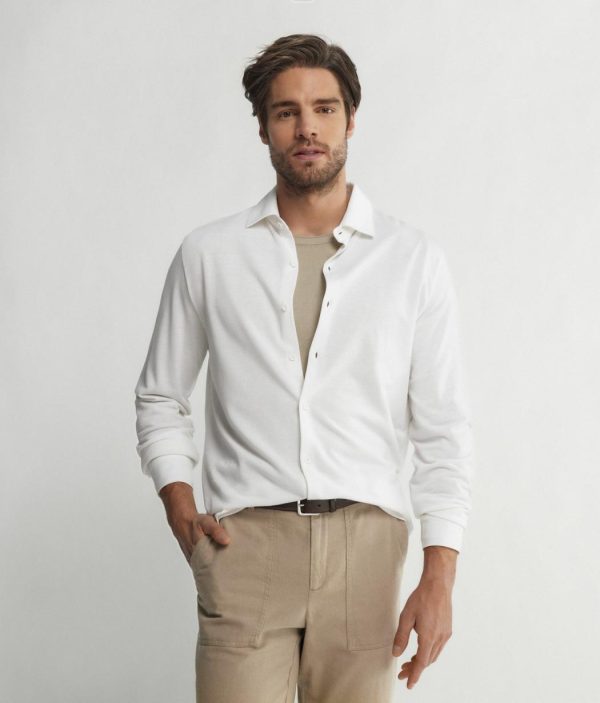Camicia A Maniche Lunghe In Piquet Di Cotone Seta Camicie | Camicie Falconeri Uomo