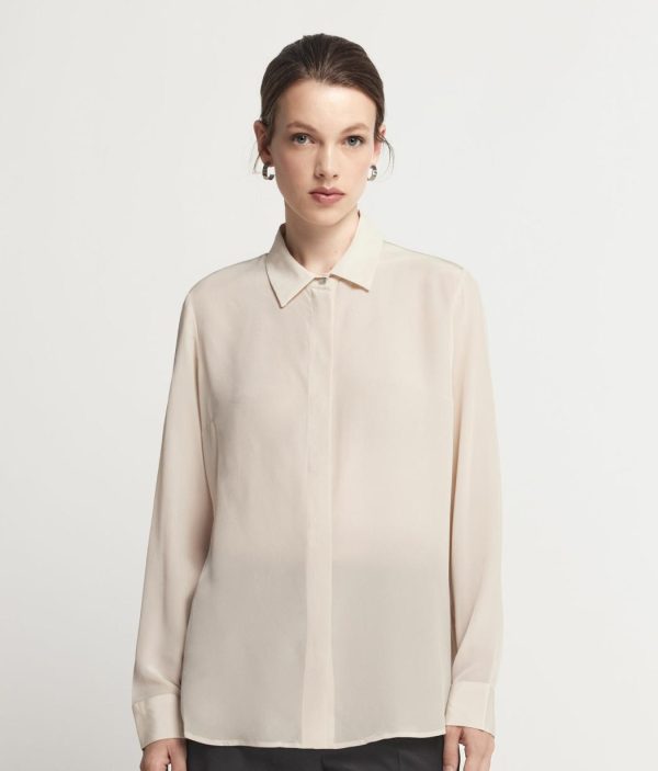 Scopri l’eleganza senza tempo di questa camicia realizzata in crepe de chine. Il design, dalle linee pulite ed essenziali, è arricchito da un classico colletto e da una chiusura con bottoni. Sobria ma distintamente raffinata non può mancare nell’armadio di chi ama qualità e stile senza compromessi.
