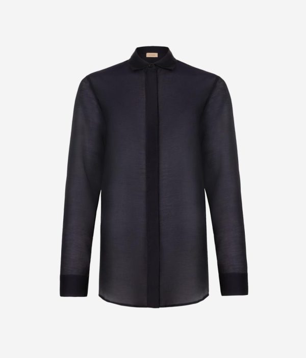 •Camicia maniche lunghe in mussola con colletto e polsini