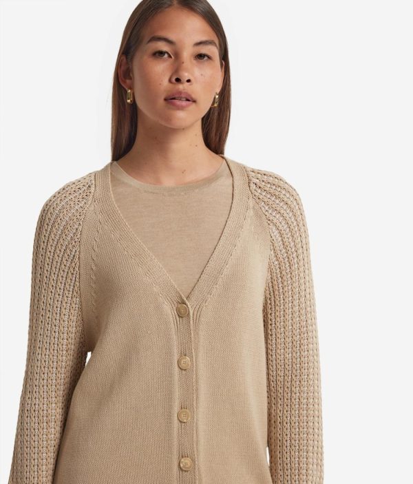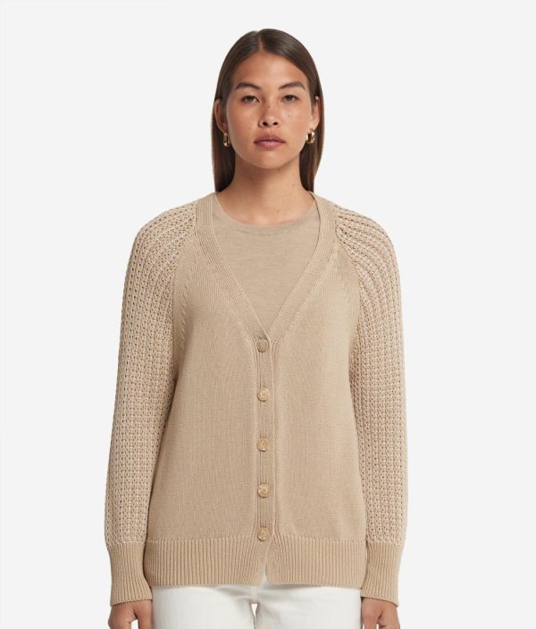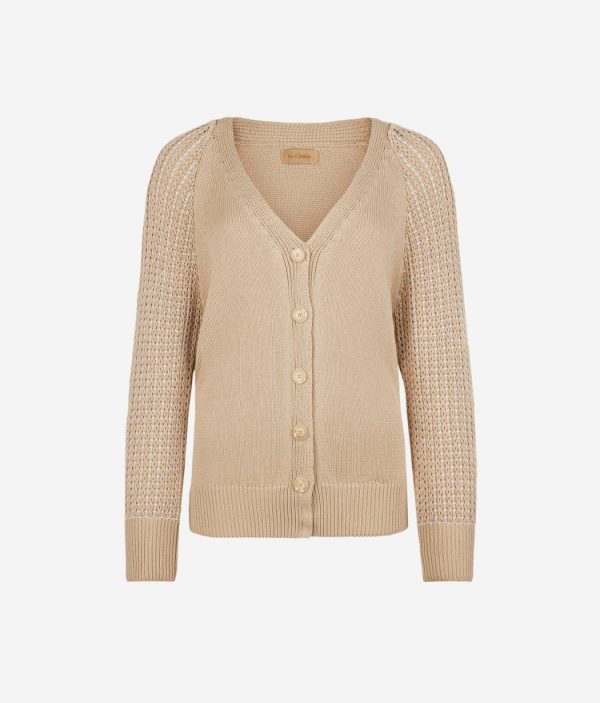 Avvolgente ed elegante, questo cardigan in cotone è un capo essenziale dal fascino senza tempo. La lavorazione sulle maniche, realizzata con fili di due colori diversi, conferisce al design profondità e movimento, mentre lo scollo a V aggiunge un tocco di classe. La chiusura frontale con cinque bottoni arricchisce il modello, esaltandone il suo stile classico.