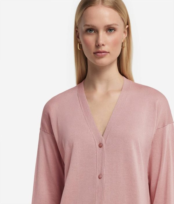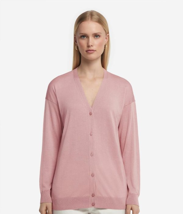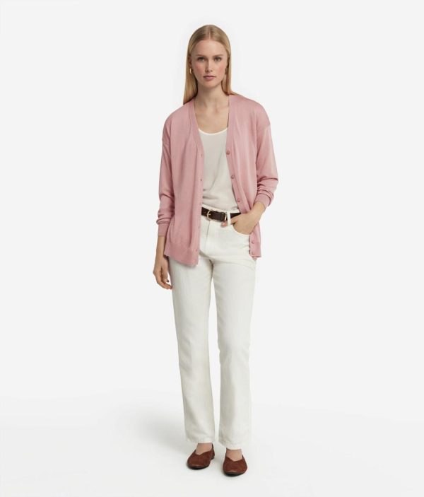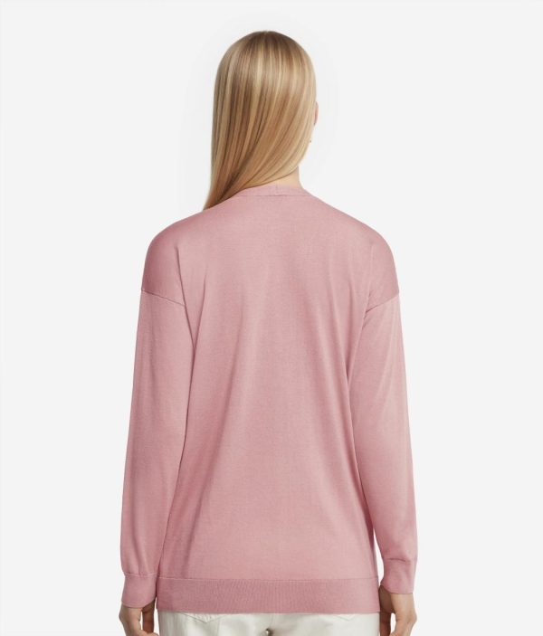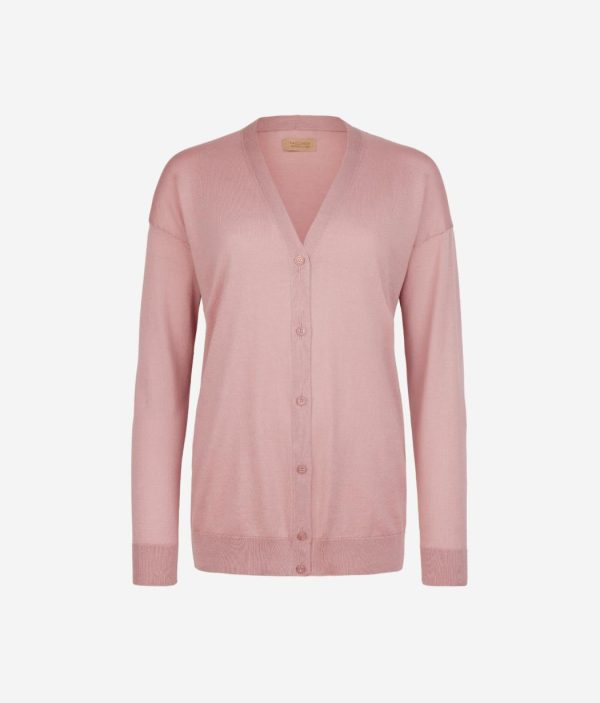 Realizzato in un raffinato mix di seta e cotone questo cardigan è l’equilibrio perfetto tra morbidezza e leggerezza. Le finiture a costa su scollo, spalle e fondo esaltano il filato avvolgente donando texture e un tocco di eleganza al design essenziale del capo.