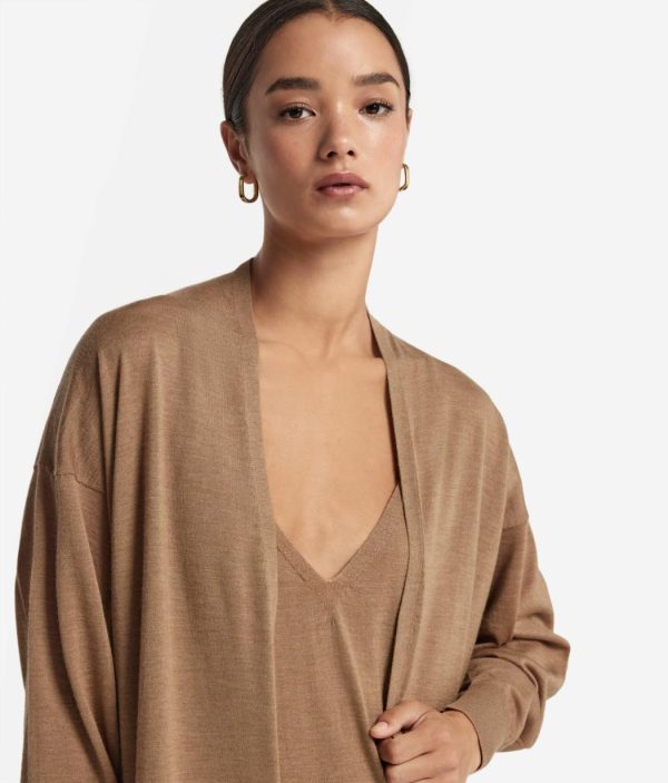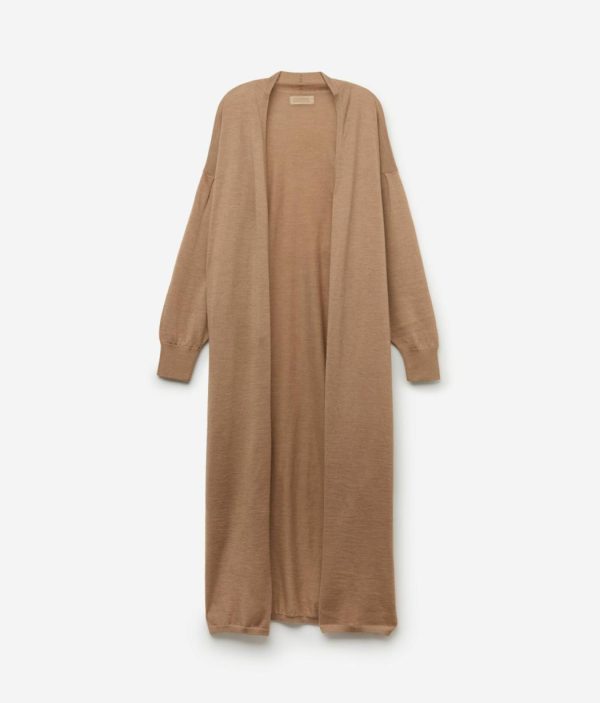 Morbidezza e carattere si incontrano in questo cardigan realizzato in pregiato Cashmere Ultrafine. Il modello presenta una lunghezza generosa ed è impreziosito su polsi e bordo da una raffinata finitura a costine, che da un tocco di texture al design essenziale. Il capo è aperto sul davanti, il suo stile naturale e fluido avvolge il corpo con delicatezza. Gli spacchi laterali alla base conferiscono movimento e leggerezza alla silhouette. Con una spalla scesa e una vestibilità regolare, è il capo ideale per un look rilassato ma chic.
