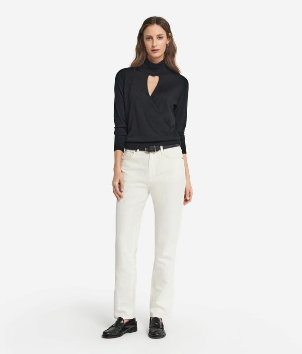 Linee aderenti e carattere contemporaneo definiscono la silhouette femminile di questa maglia in Cashmere Ultrafine. A caratterizzarne il design, un originale collo alto con scollatura a V incrociata sul davanti. Le maniche lunghe e la lavorazione a costine su bordo, polsini e collo aggiungono struttura, valorizzando il tessuto morbido e avvolgente. La vestibilità slim segue con eleganza le forme, rendendo questo modello ideale per le amanti di un look casual chic.