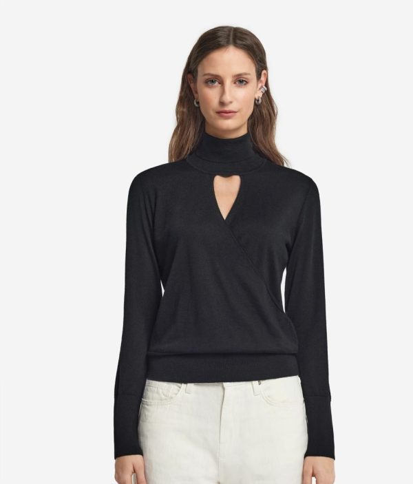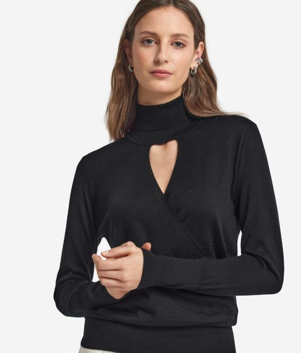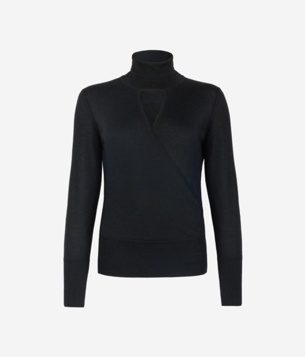• Collo alto con particolare scollatura a V incrociata