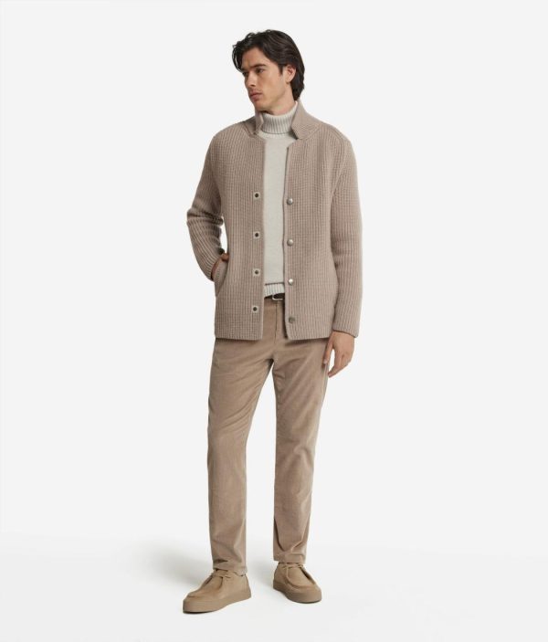 Pregio, eleganza e dettagli sartoriali caratterizzano lo stile di questa giacca realizzata in Cashmere Ultrasoft. La morbidezza del filato naturale si unisce al motivo a coste, creando una texture tridimensionale che aggiunge profondità e ricchezza al design. La chiusura centrale è impreziosita da bottoni a pressione con finiture in microfibra effetto suede, offrendo un raffinato contrasto materico che esalta il tessuto.