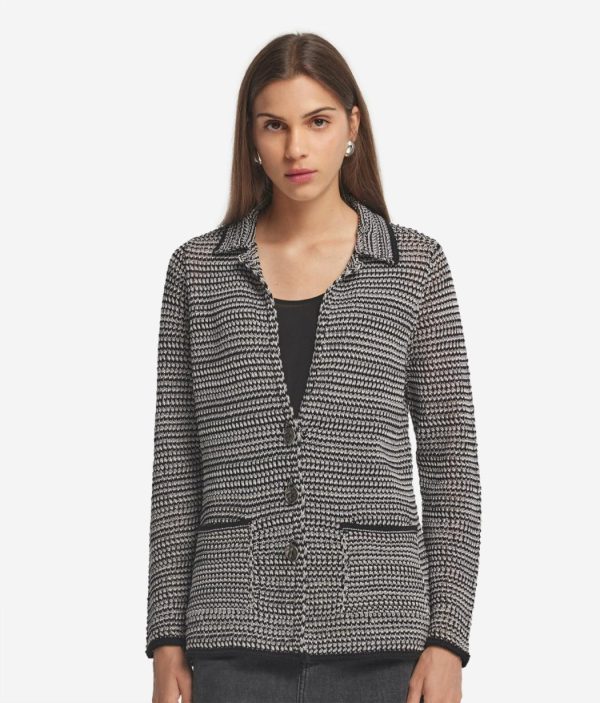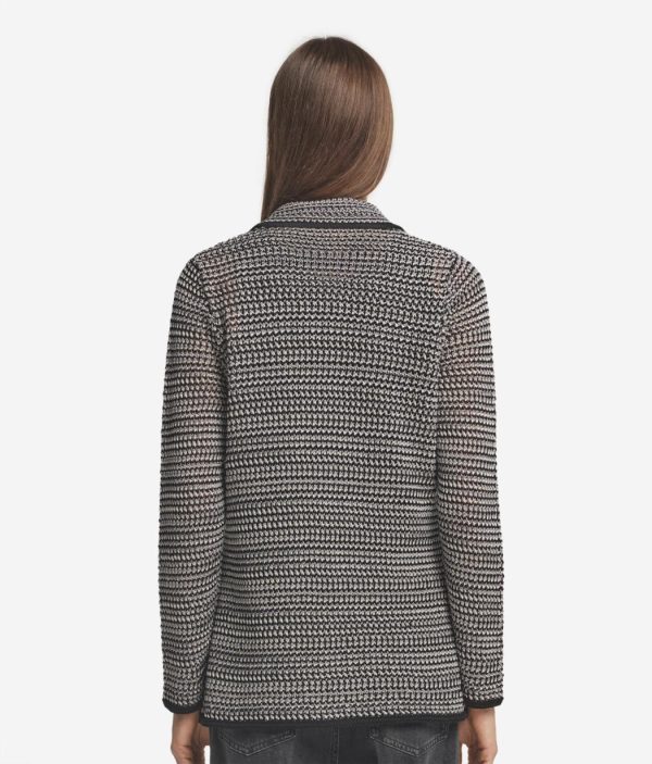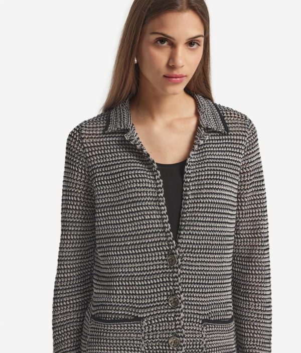 Questa giacca in cotone e lino si caratterizza per la sua elegante texture traforata effetto crochet, arricchita da un filato lamè che ne accentua la raffinatezza: questo è il risultato di una lavorazione ricercata e dell’expertise dei maestri artigiani. I dettagli, come il rever in cotone e le tasche frontali, conferiscono al capo un’anima contemporanea e versatile, rendendolo perfetto per ogni occasione.