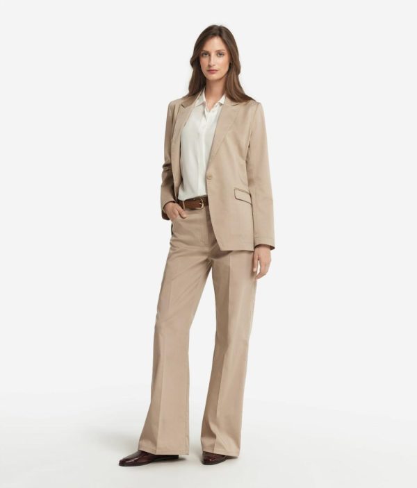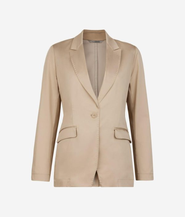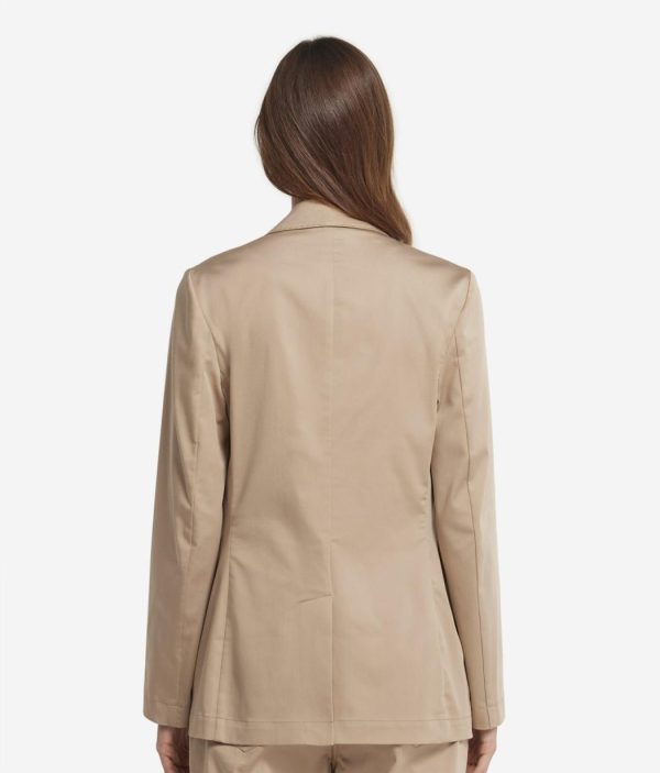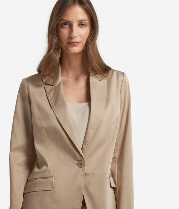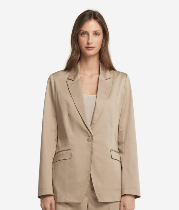 Realizzata in tessuto di cotone elasticizzato, questa giacca è un mix tra modernità e raffinatezza. Il design si caratterizza per il rever classico, la chiusura a un bottone e le tasche a filetto con pattina sul davanti. Le spalle regolari donano una silhouette equilibrata, mentre lo spacco posteriore aggiunge praticità e movimento. La vestibilità regolare e la lunghezza al fianco rendono questo capo versatile e adatto a completare sia look formali che casual chic.