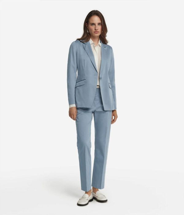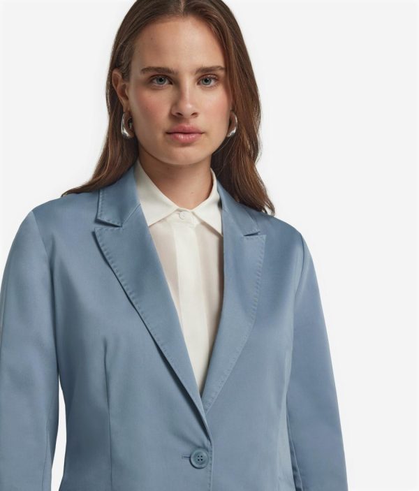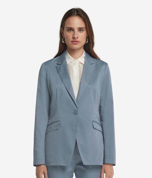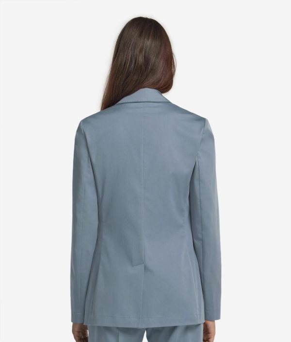 Realizzata in tessuto di cotone elasticizzato, questa giacca è un mix tra modernità e raffinatezza. Il design si caratterizza per il rever classico, la chiusura a un bottone e le tasche a filetto con pattina sul davanti. Le spalle regolari donano una silhouette equilibrata, mentre lo spacco posteriore aggiunge praticità e movimento. La vestibilità regolare e la lunghezza al fianco rendono questo capo versatile e adatto a completare sia look formali che casual chic.