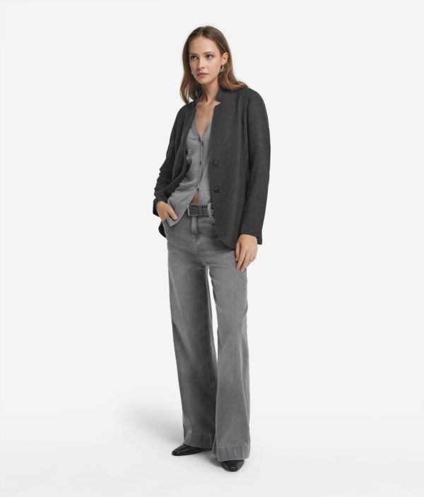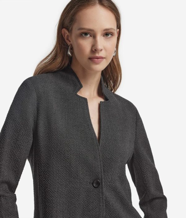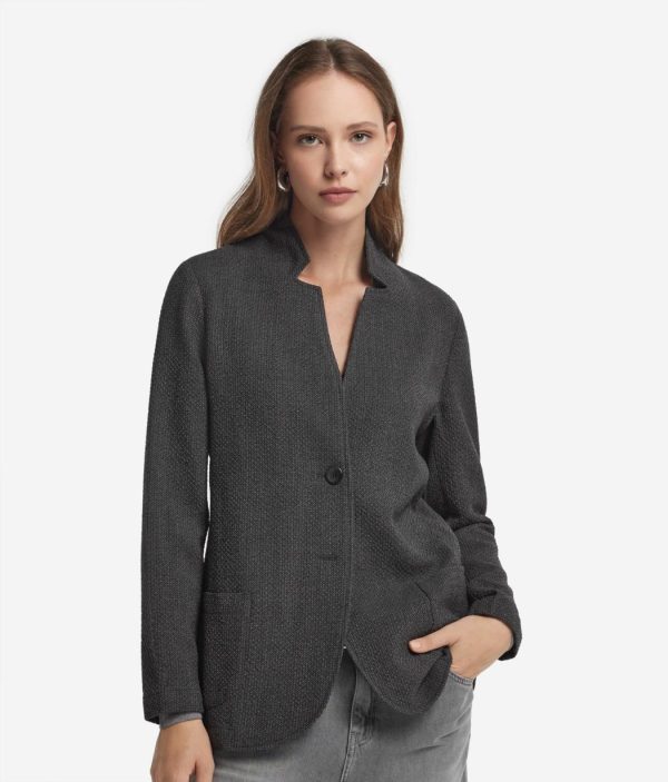 Realizzata in un pregiato tessuto di lana con una leggera componente stretch, questa giacca unisce struttura e flessibilità, pensata per accompagnare con naturalezza ogni movimento. Rever classico, spalla regolare e vestibilità slim disegnano una linea essenziale ma decisa. Le tasche applicate aggiungono un tocco moderno, mentre la chiusura monopetto a due bottoni completa il design con sobrietà. La lunghezza al fianco la rende ideale per look versatili, dal formale al casual ricercato.