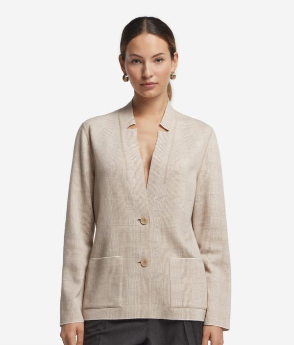 Realizzata in Cashmere Ultrafine e cotone, questa giacca reversibile unisce stile e versatilità con eleganza. Il rever e la lavorazione che alterna tinta unita da un lato e principe di galles dall’altro, creano un effetto sofisticato e contemporaneo. La chiusura monopetto con bottoni esalta la vestibilità slim, mentre le tasche su entrambi i lati e la lunghezza al fianco completano il modello con un equilibrio perfetto tra funzionalità e stile.