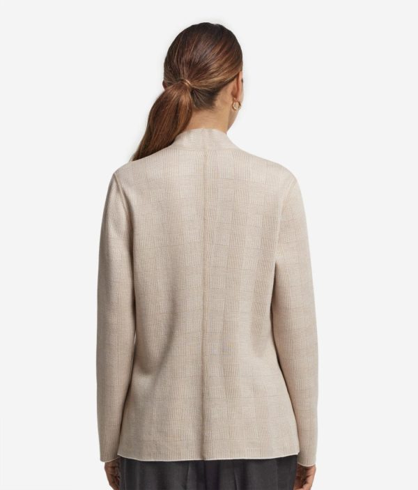 • Lavorazione in maglia tinta unita da un lato e principe di galles bicolore dall’altro