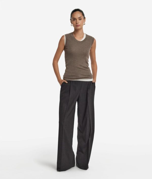 La nobile fibra del Cashmere Ultrafine eleva il gusto essenziale di questo gilet dal gusto raffinato e senza tempo. Il design essenziale con girocollo è valorizzato dalla lavorazione a costina verticale, che dona slancio alla figura mentre le rifiniture su bordo, scollo e spalle esprimono artigianalità e cura nei dettagli.