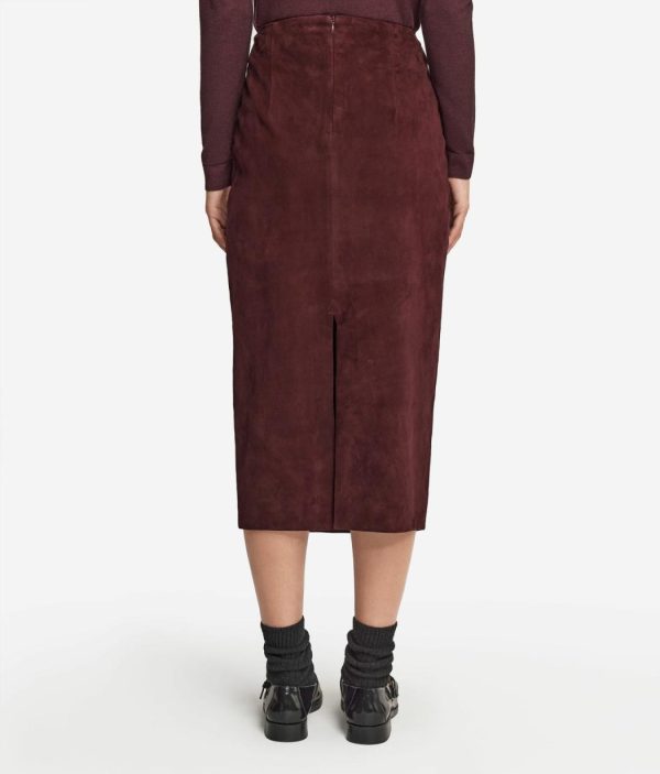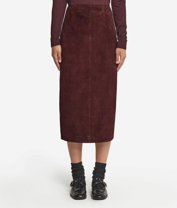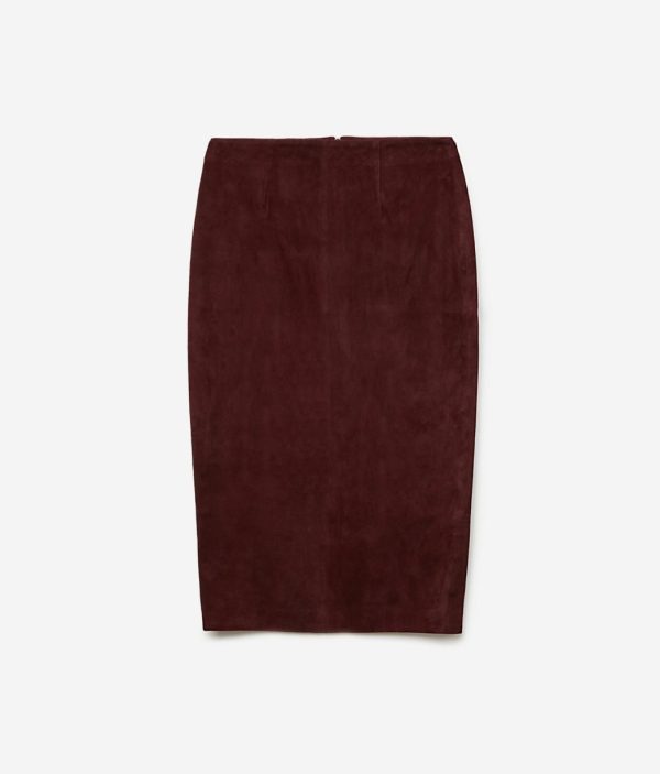 Scopri l’eleganza e la raffinatezza di questa gonna realizzata in pelle scamosciata. Grazie alla sua lunghezza midi e alla sua vestibilità slim è ideale per valorizzare le forme e ogni movimento con grazia e stile. La zip discreta posizionata sul retro garantisce una chiusura agevole, mentre lo spacco posteriore aggiunge un tocco di sensualità ed eleganza senza tempo.