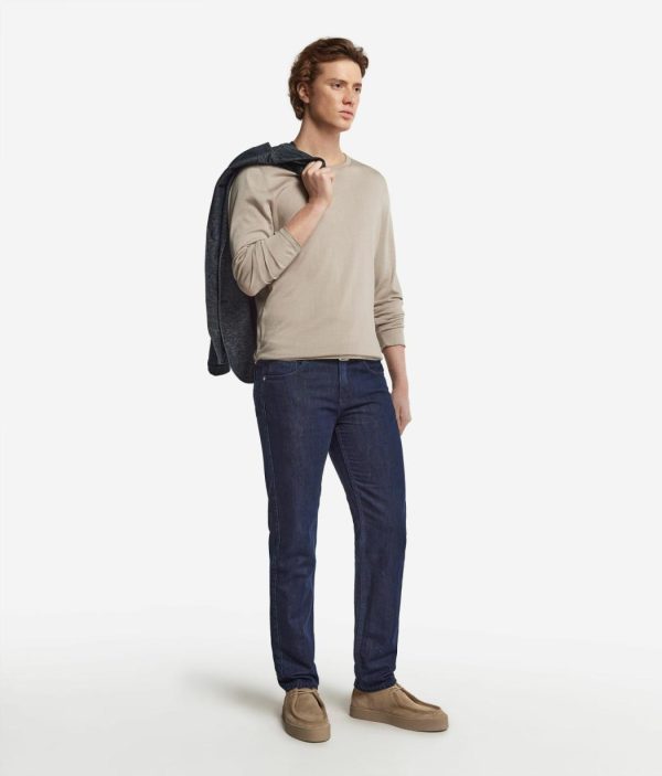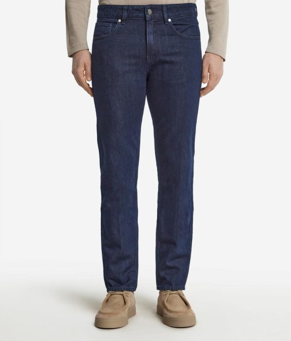 Stile casual e dettagli ricercati caratterizzano il design di questo jeans in cotone e lino. Il capo è arricchito dal particolare ricamo interno in cintura e dalle tasche interne impreziosite dal tessuto loggato. La vestibilità regolare offre una silhouette slanciata, rendendo questi jeans un must-have versatile per i tuoi look quotidiani.