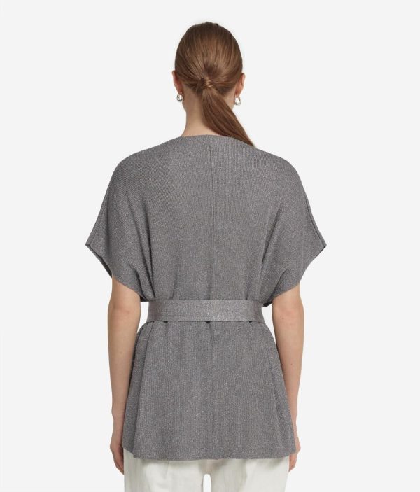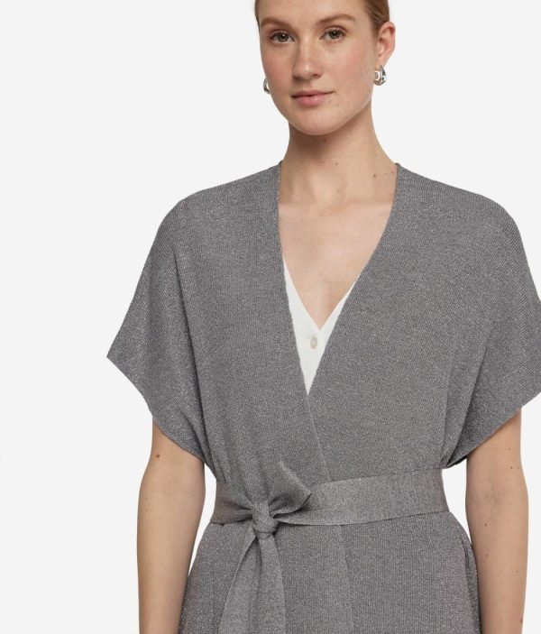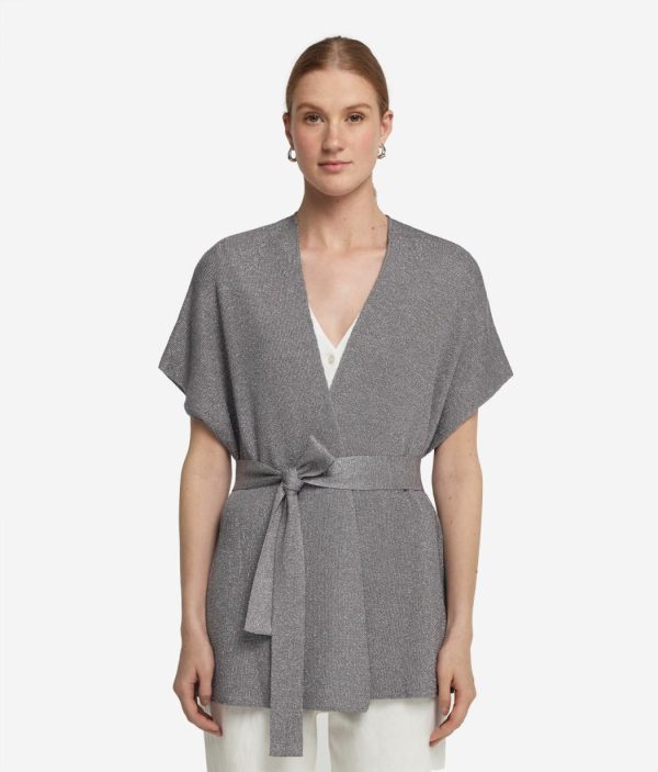 Leggerezza ed eleganza si incontrano in questo kimono a manica corta, realizzato in viscosa e arricchito da un luminoso filato in lurex. La cintura regolabile consente di personalizzarne la vestibilità, definendo il punto vita e slanciando la figura. Il modello avvolge delicatamente il corpo, offrendo una sensazione di morbidezza sulla pelle.