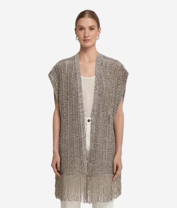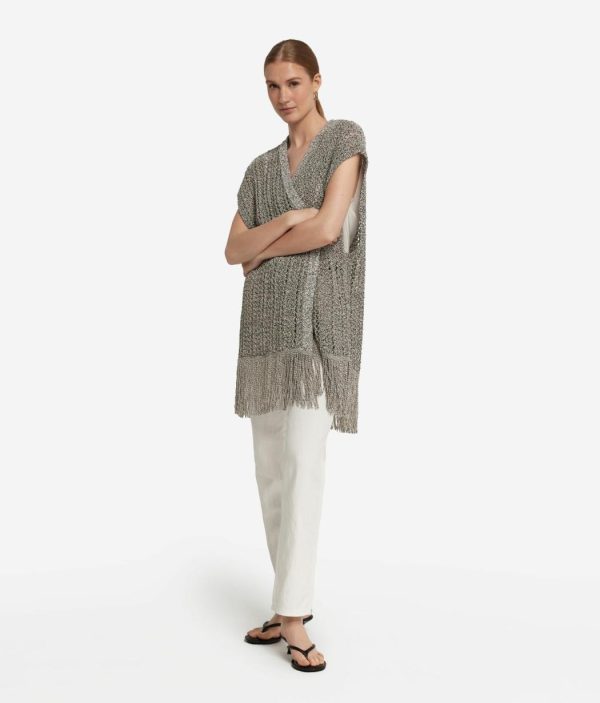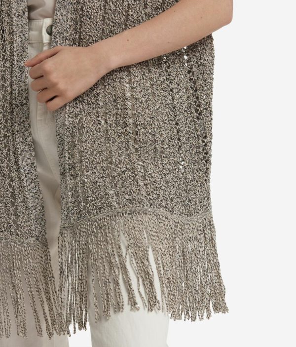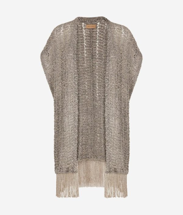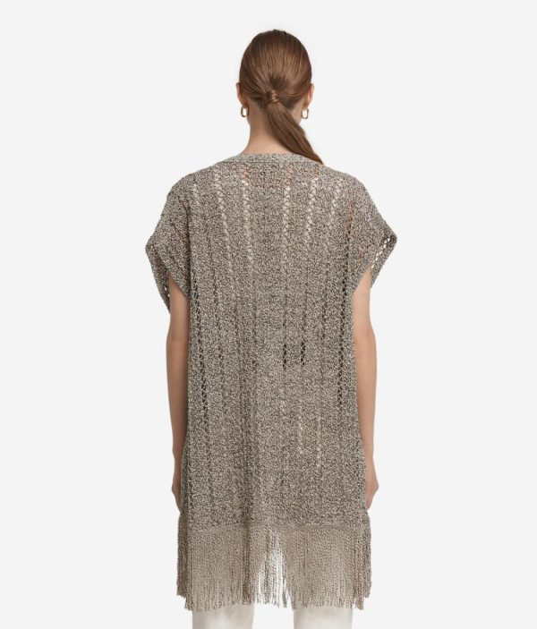 Un gioco di trasparenza esalta il design di questo kimono traforato a maniche corte, perfetto per aggiungere un tocco unico ad ogni look. Realizzato in cotone e viscosa, è impreziosito sul fondo da filati di luminose paillettes che offrono un tocco unico e ricercato. I dettagli a coste completano il design, mentre la lunghezza ai fianchi dona un fit rilassato rendendo il capo ideale per ogni occasione.