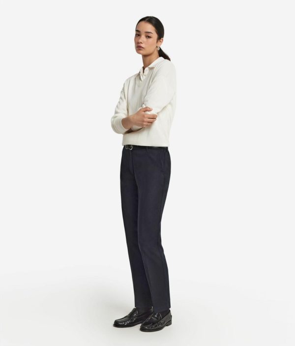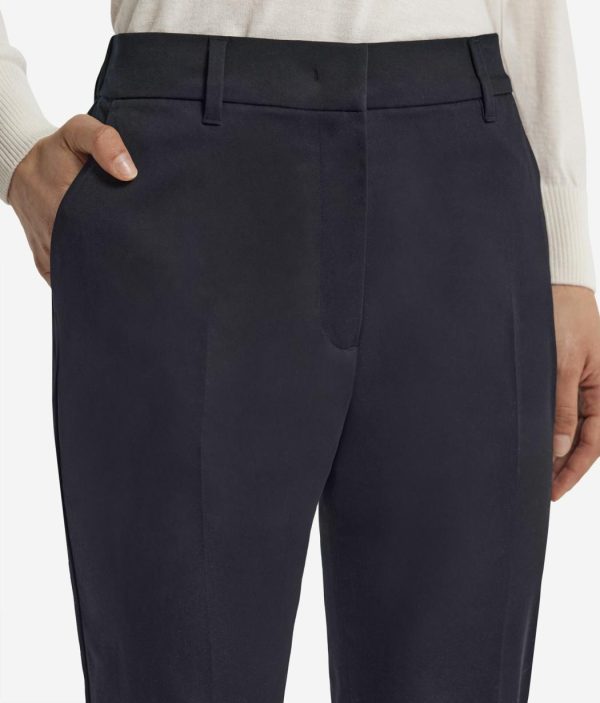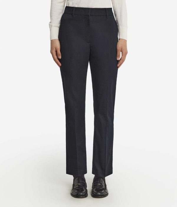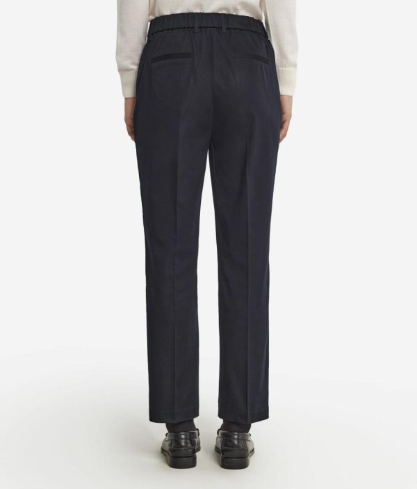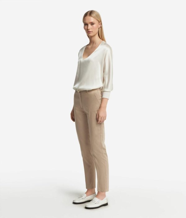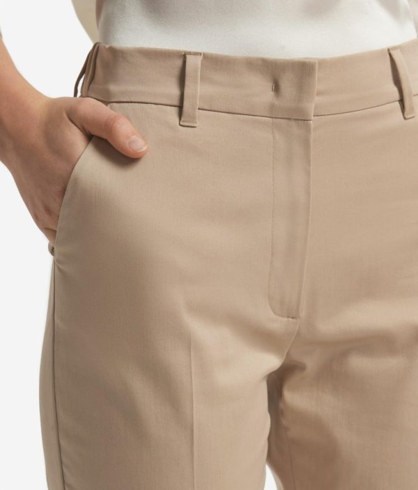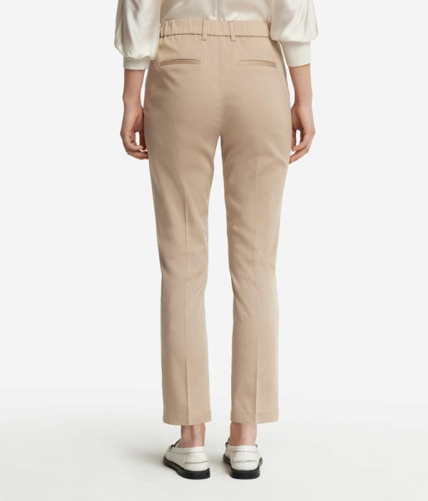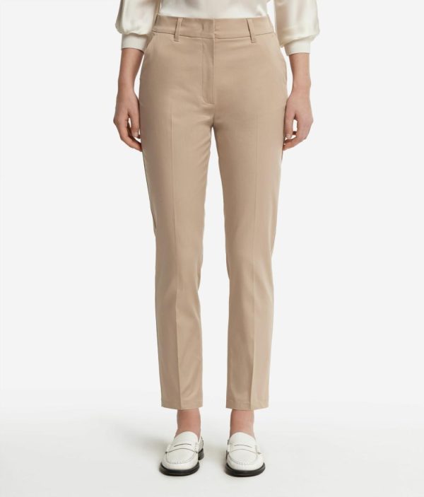 Ispirazioni sartoriali e gusto casual si combinano in questo pantalone a sigaretta in cotone elasticizzato. Il design essenziale è arricchito da pratiche tasche laterali, un leggero arriccio posteriore e da passanti in vita. Con una vestibilità slim, è il capo ideale per un look elegante e contemporaneo, perfetto per ogni occasione.