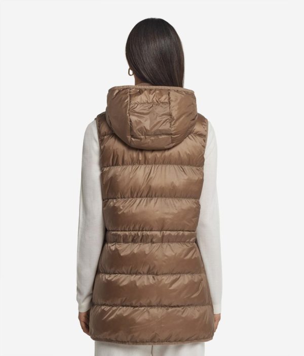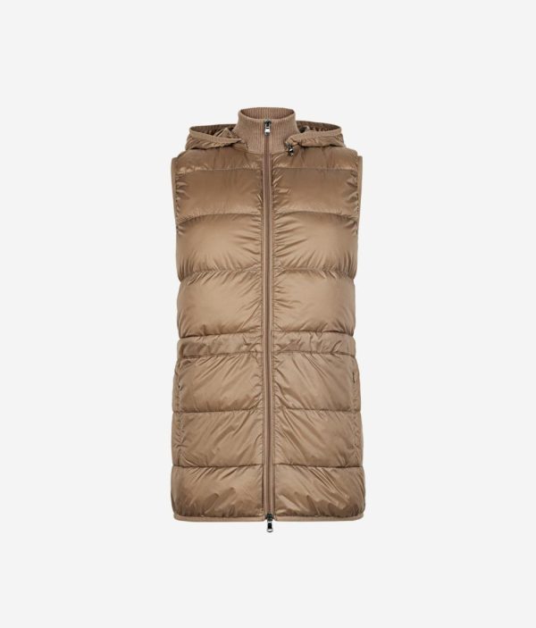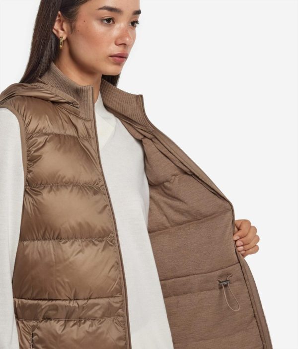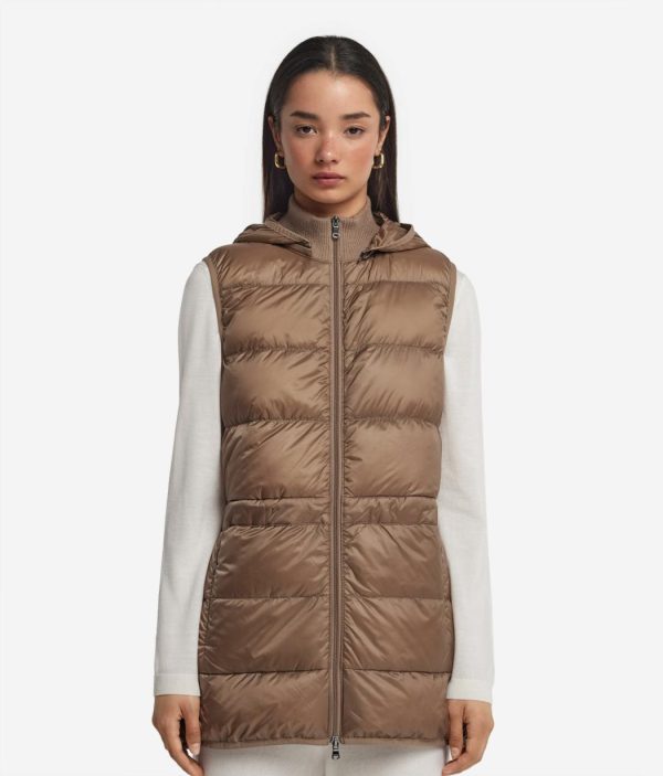 Materiali pregiati esaltano lo stile di questo piumino senza maniche in nylon e Cashmere Ultrafine. La zip e la coulisse regolabile in vita ne valorizzano il design, mentre il collo in Cashmere Ultrasoft offre una sensazione di morbidezza impareggiabile. Il cappuccio removibile aggiunge versatilità, rendendo questo capo ideale per un look moderno e funzionale