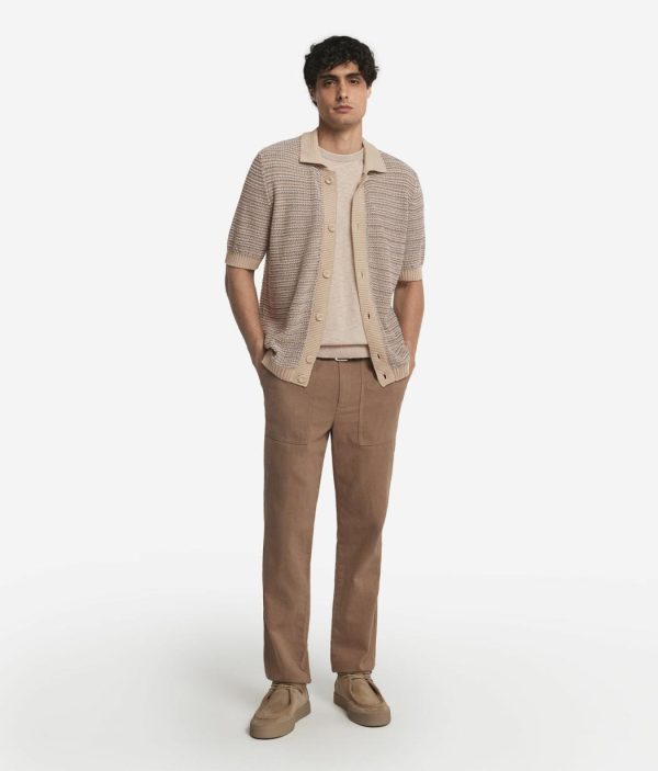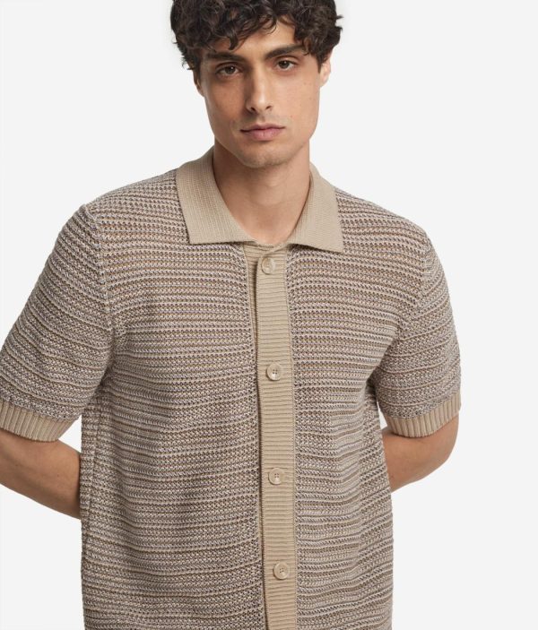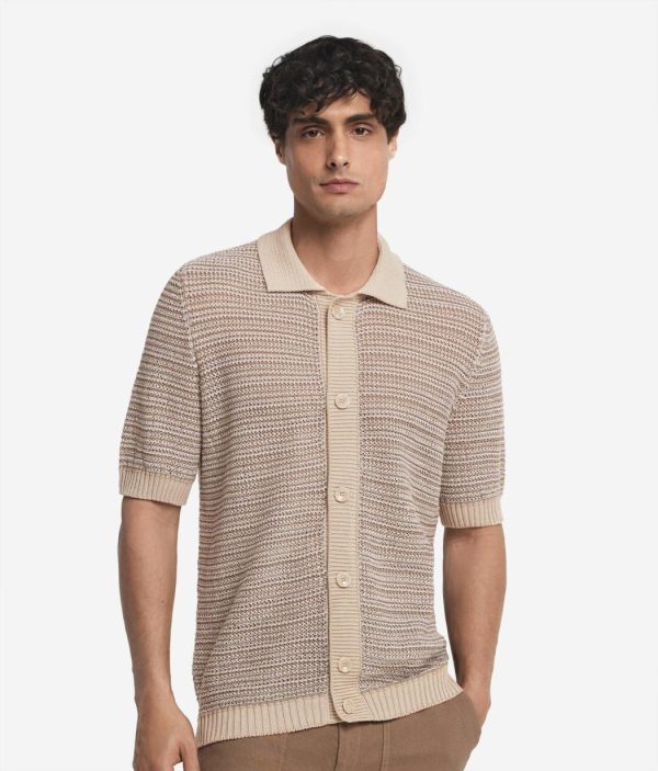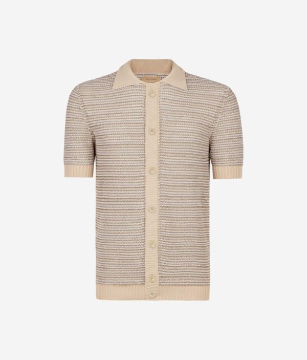 Il motivo a righe orizzontali, unito alle nuance selezionate con cura, rende questa maglia in cotone l’emblema dell’eleganza informale. L’abbottonatura centrale aggiunge un tocco distintivo a questo capo, dal design semplice e raffinato. La vestibilità, dai volumi equilibrati e armoniosi, assicura una sensazione di naturale leggerezza, perfetta per ogni occasione.