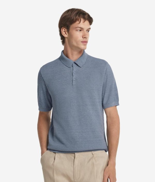 Un perfetto equilibrio tra tradizione e modernità esalta il design di questa polo in maglia di cotone. Il davanti presenta una raffinata lavorazione a punto cesto, che aggiunge una texture unica e un tocco di eleganza, mentre il retro e le maniche sono realizzati in maglia rasata per un effetto essential. Il collo con bottoni, dettaglio distintivo e sofisticato, completa il design con un tocco di classe senza tempo.