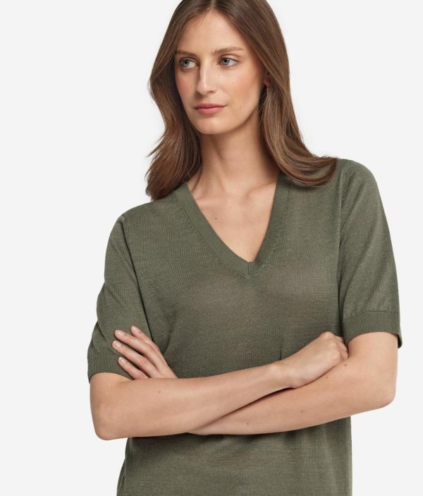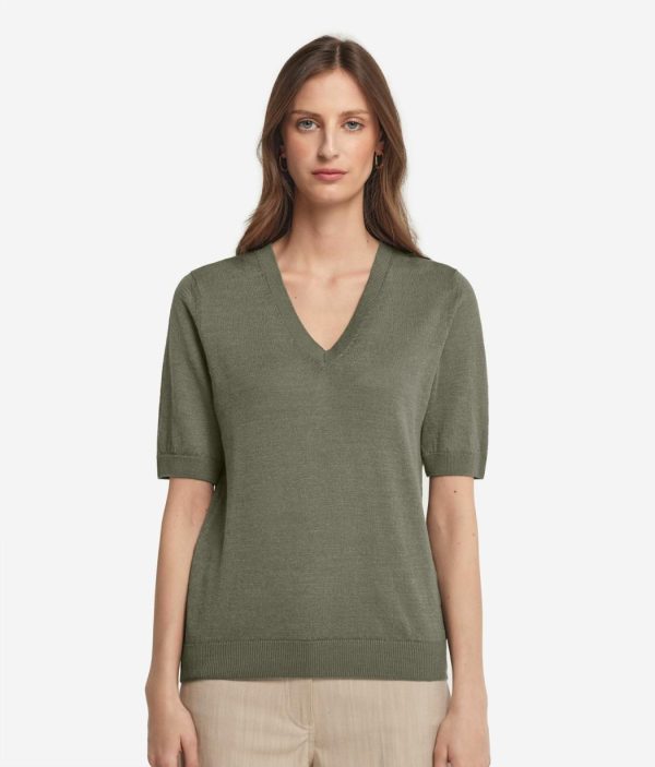 T-shirt Con Scollo A V In Lino E Cotone T-Shirt | T-Shirt Falconeri Donna