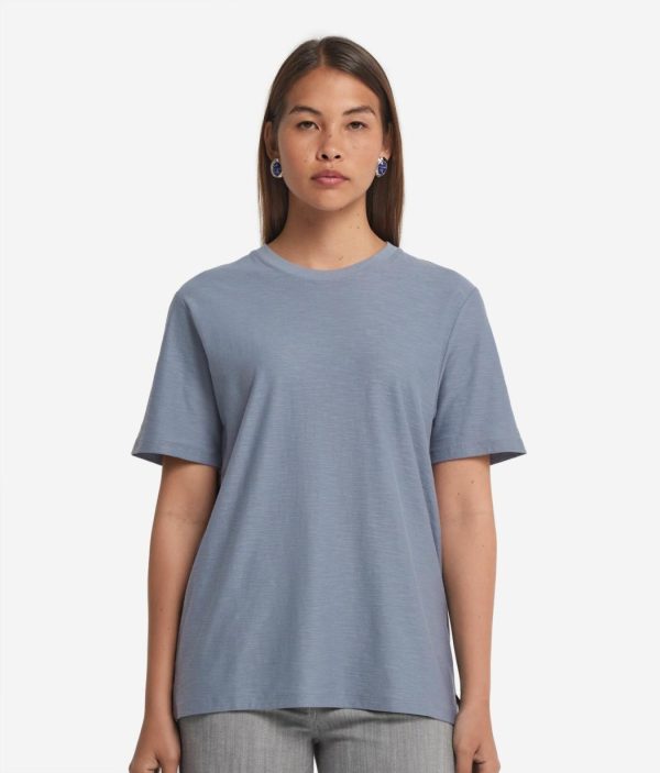 Le qualità del filato naturale conferiscono una texture liscia e confortevole a questa t-shirt realizzata interamente in cotone. La vestibilità relax e la lunghezza perfetta al fianco ne esaltano il gusto contemporaneo rendendolo ideale per completare look casual con semplicità e stile.