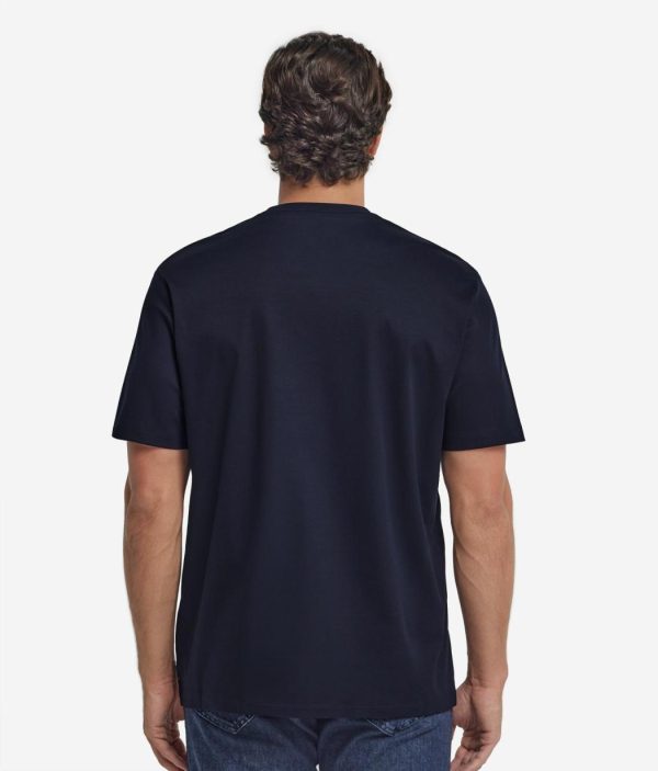 Essenziale e versatile, questa t-shirt è realizzata in morbido jersey di cotone elastico. Il girocollo con bordo a costine aggiunge un tocco di carattere, mentre le maniche corte e la vestibilità rilassata garantiscono un fit comodo e contemporaneo. Perfetta per un look casual e disinvolto, è un must-have del guardaroba quotidiano.