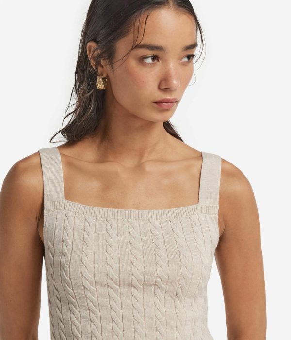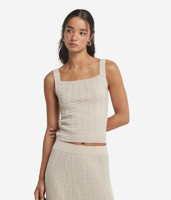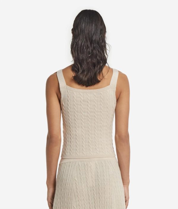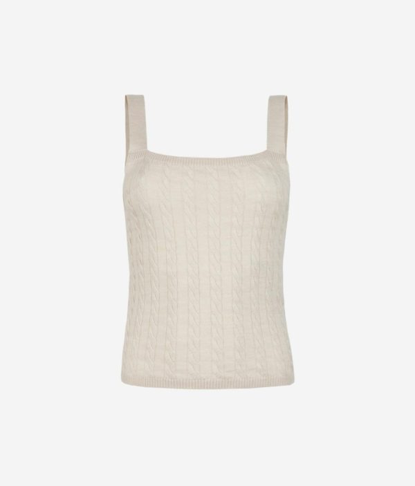 Caratterizzato da una delicata lavorazione a treccine verticali, questo top in lana si distingue per il design essenziale con spalline larghe e scollo dritto. Le rifiniture a coste aggiungono carattere al capo, mentre la vestibilità slim esalta la silhouette con naturalezza rendendolo un capo perfetto da indossare da solo o sotto giacche e cardigan.